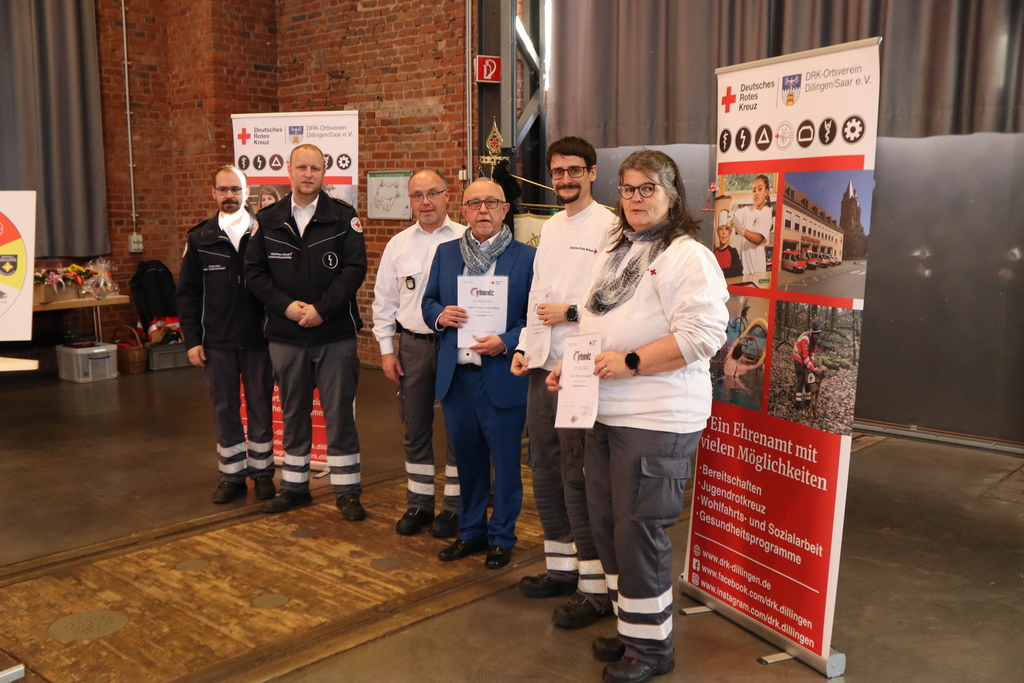 während der Covid19 Pandemie geehrt – hier erhielten die Helferinnen und Helfer das Leistungsabzeichen des DRK Landesverband Saarland Covid 19 sowie eine Dankesurkunde der Präsidentin des DRK, Frau Gerda Hasselfeld.