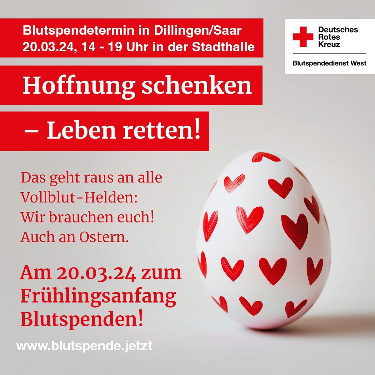 7. November 2025 11:11 Blutspenden zum Frühlingsanfang! Stadthalle Dillingen, 20.03.2024, 14 – 19 Uhr … Blutspenden zum Frühlingsanfang! Stadthalle Dillingen, 20.03.2024, 14 – 19 Uhr Source